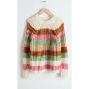 & Other Stories Size XS Chunky Knit Color Block Stripe Boxy Sweater Mohair Blend