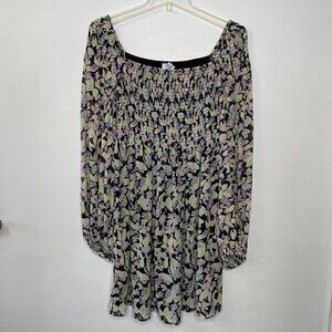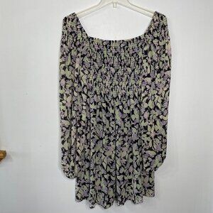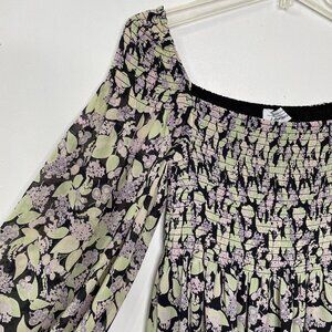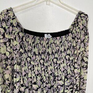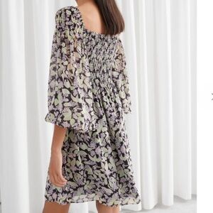 & Other Stories Smocked Floral Dress Womens Size 4 Long Sleeve Mini Square Neck