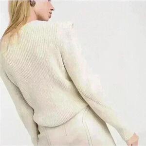 & Other Stories Statement Padded Shoulder Cream Knit Sweater Size XS NWOT!