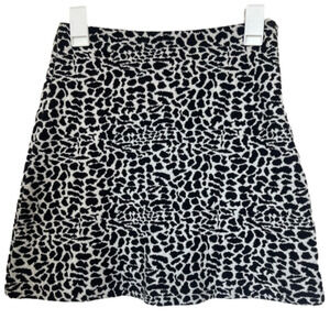 Good Pre-owned condition. Cute stretch mini skirt with dude zip. Material is semi thick and lined on the interior with soft black fabric.