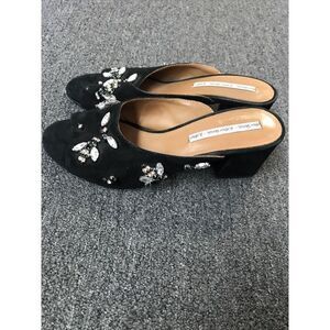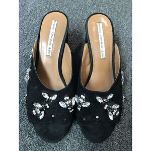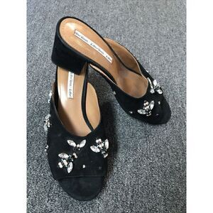 & Other Stories Suede Open Toe Mules Jewel Slip On Block Heel Black 38 US 7.5