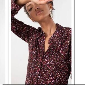 & Other Stories Sz 8 Micro Floral Midi Shirt Dress Moody Floral Print Button-up