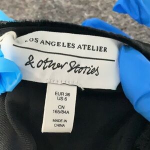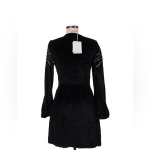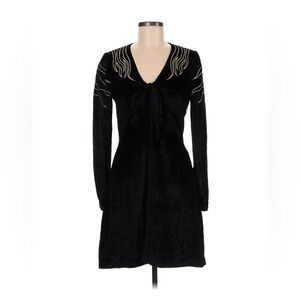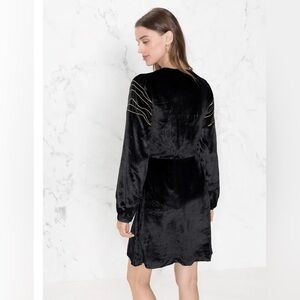 Designed in Los Angeles. Soft velvet dress defined by the lurex thread embroidery around the shoulder area.