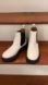 Stylish white ankle boots with black elastic panels. Chunky sole for added comfort. Perfect for versatile wear.