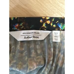 & Other Stories Womens Black Multicolor Floral Print Pleated Midi A-Line Skirt 4