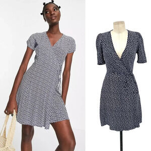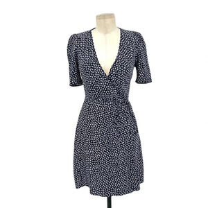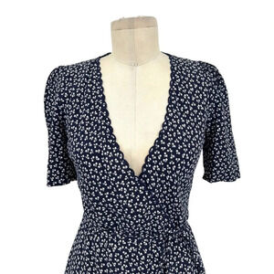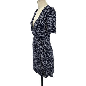 & Other Stories Wrap Mini Dress Short Sleeve Floral Print Navy Blue White Size 0