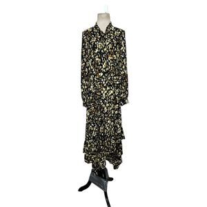 & Other Stories black yellow long sleeves ruffle asymmetrical midi dress size 2