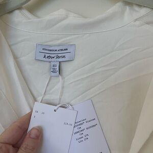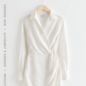 Chic white wrap dress with long sleeves. Perfect for any occasion.