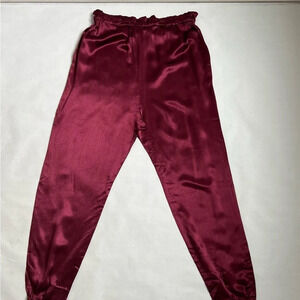 & Other Stories red Wine Satin size 8 US trousers pants Elastic Waist and Cuffs