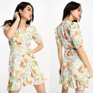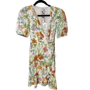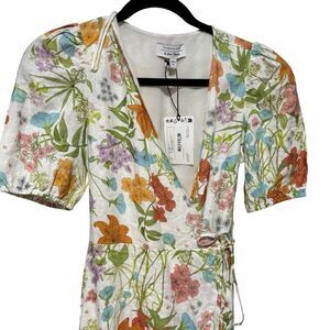 & Other Stories Linen Wrap Mini Dress in White Floral Print