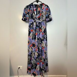 & Other Story's Nostalgia Floral Short Sleeve V-neck Maxi Dress W/Slits Size 8