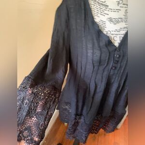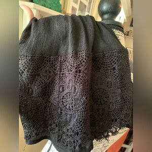 OtherLinks black lacy top. No size listed. Measures like a small.