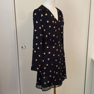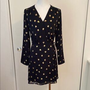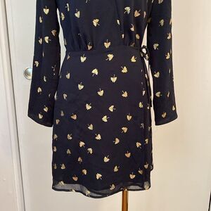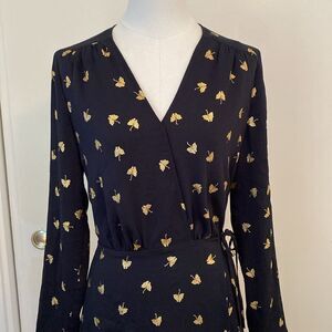 & Other Stories Black and Gold Leaf Print Long Sleeve Wrap Mini Dress Size 2