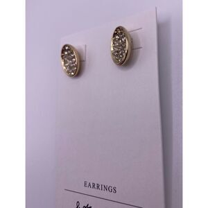 Gold tone earrings with pave crystals in an oval shape