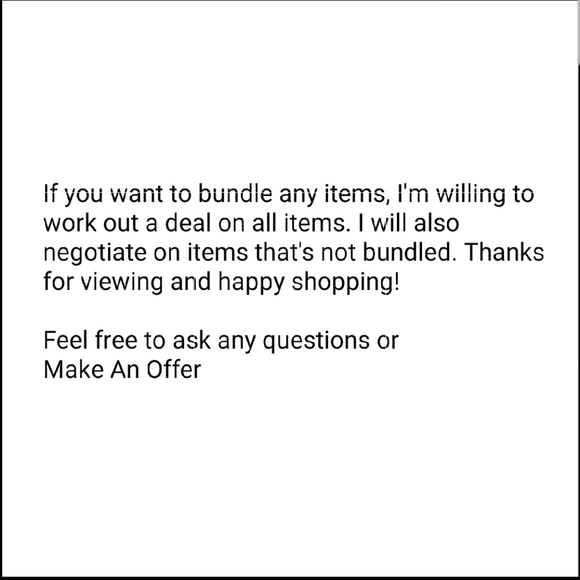 If you want to bundle any items, I'm willing to work out a deal on all items. I will also negotiate on items that's not bundled. Thanks for viewing and happy shopping!