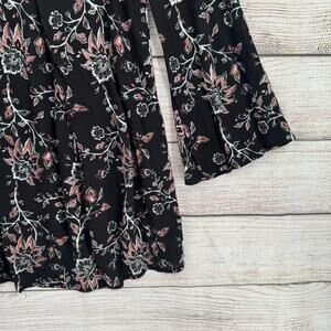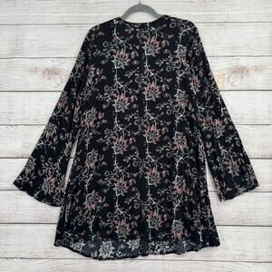 Others Follow Floral Shirt Mini Dress Womens Large Black Pink V-Neck Button Neck