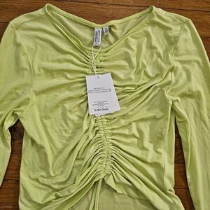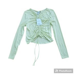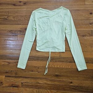 Others Stories Crop Top Long Sleeve Lace-up Green Blouse Size M