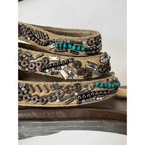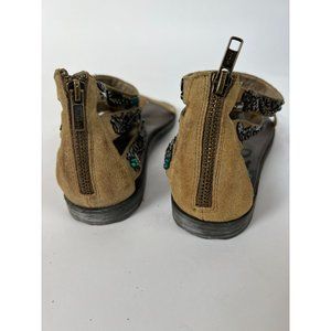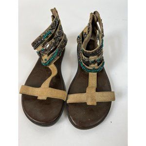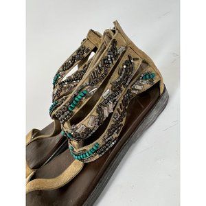 Otot Pendleton Gladiator Zipper Back Sandals 7M Tan Beaded Suede