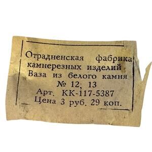 Otradnenskaya Mid Century Russian Alabaster 6 5/8" Vase Art Display with Tag