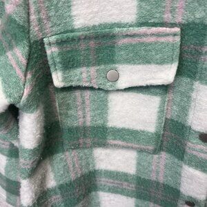 Ott, shacket, size S/M, preppy, pink, green, white, plaid, academia, layering, jacket, shirt jacket, collegiate, casual, womens, shirt