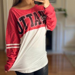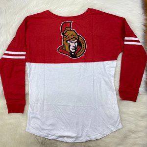 Ottawa Senators Oversized Long Sleeve Cozy Fan Shirt New Era Red White Women's