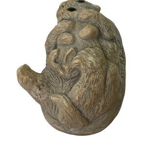 Vintage Sweet Otter And Baby Bekka Mount ST Helen's Ash Pottery Sculpture