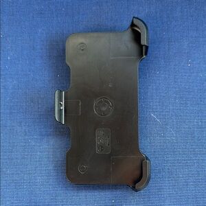 The OtterBox Black Holster is a robust accessory designed to securely hold your phone with its durable belt clip. Its sleek, matte black finish and spring-loaded mechanism ensure easy access and reliable protection for your device.
