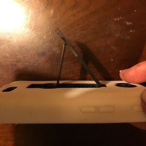 This is white rubber with the black hard case and a little pedal to stand out. It's a standard LG android phone
