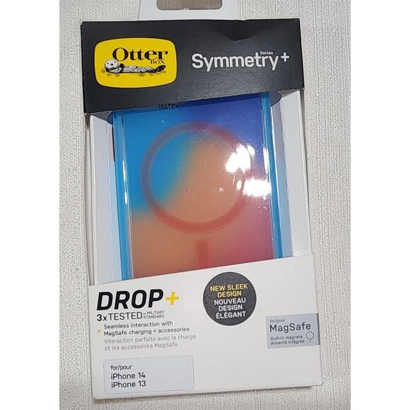 This otterbox symmetry iPhone case is new in the box and comes with the original factory seal and sticker. It has a new sleek design that works with MagSafe chargers and accessories. The case has been tested to military standards to ensure durability.