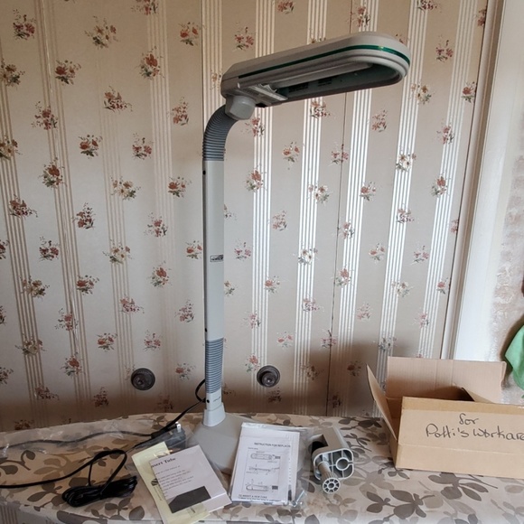 18w flex arm craft Ott-Lite. Comes with base and clamp for easy location. Has all paper work including warranty card.