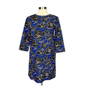 ottod’Ame blue black floral 3/4 sleeve shift dress