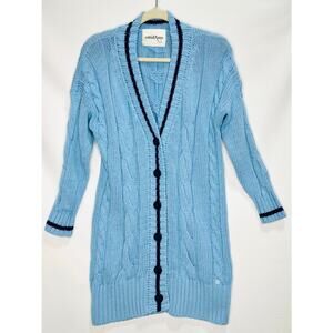 Ottod'ame Cable Knit Long Cardigan Sweater Light Blue Size 6 Made in Italy