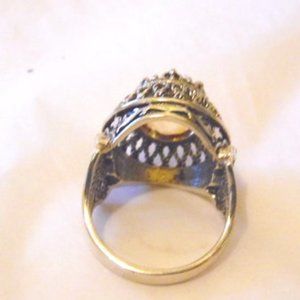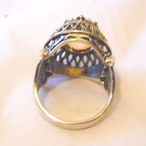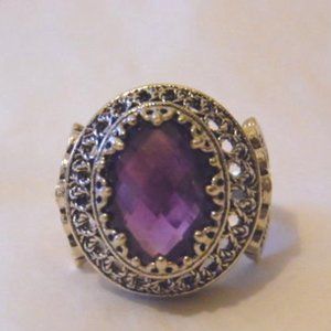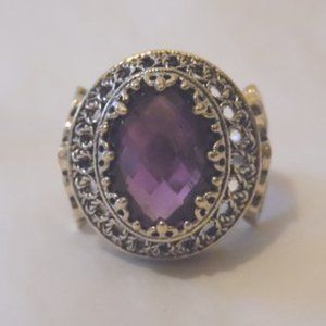 Ottoman Silver Amethyst Oval Gemstone Filigree Ring Size 8