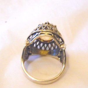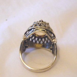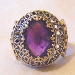Ottoman Silver Amethyst Oval Gemstone Filigree Ring Size 10. Design Information: Sterling silver ring; oval gemstone at center in detailed prong setting and border of openwork filigree; Beaded filigree forms shoulders> Measurements: Approx. 13/16"L x 1/2"W x 1/2"H; shank 1/8"W; Metal Type: Sterling silver; Metal Stamp: .925; Finish: Oxidized, polished; Additional Features: Handcrafted; Country of Origin: Turkey; Stone Information: Amethyst: Oval 7ct; mined in Africa