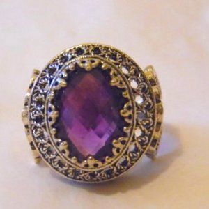 Ottoman Silver Amethyst Oval Gemstone Ring Size 10