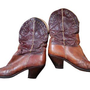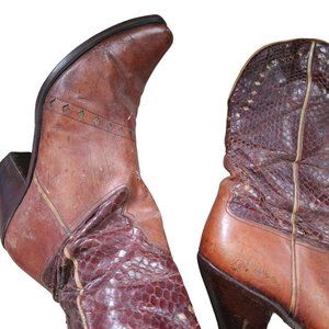 Ottorino Bossi Snakeskin Cowboy Boots Womens 7 Brown Heel Booties