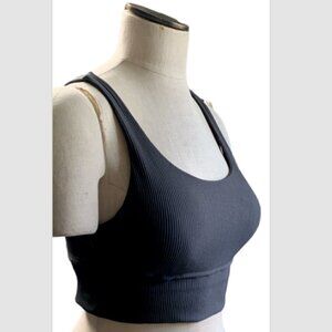 Ouber Padded Ribbed Sports Bra Criss-cross Back Strap XL Gray #56H
