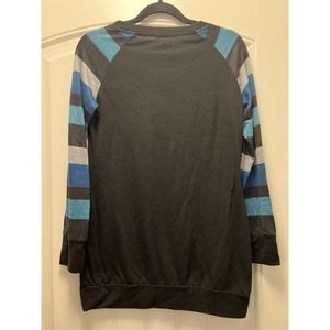 Ouges Women’s Long Sleeve Round Neck Soft Color Block Sweater Size M Black Blue