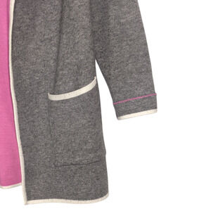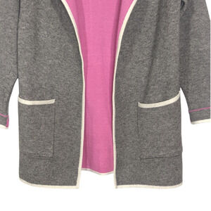 Ouhe Preppy Gray Kint Open Front Cardigan Blazer Pink Lining Small Medium