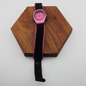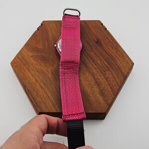 Oui Art Women's Watch Pink Black Retro Dial Adjustable Canvas Hook & Loop Band
