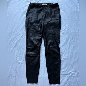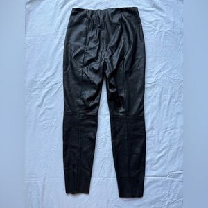 Oui Chasey Black Faux Leather Leggings. Super soft, stretchy vegan leather. Comfortable slip-on style, through elasticated waistband. Medium body height and normal leg length. Decorative stitching on knee and back. Without pockets, nothing wears. The ideal combination partner for longer tops. Tag is not sewn on one side, but its interior. Size US 10.