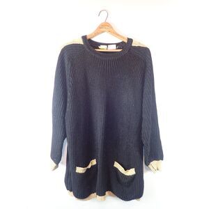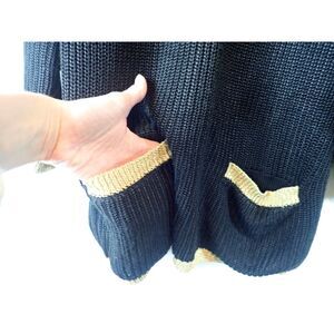 Oui Designer Collection Vintage Sweater Black 80s Gold Accents Small Oversized