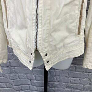 Oui Moments Beige Zip Front Leather Trimmed Jacket Size 10 NWT
