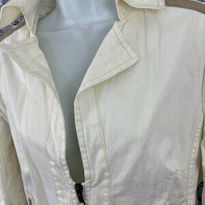 Oui Moments Beige Zip Front Leather Trimmed Jacket Size 10 NWT