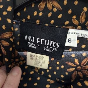 Oui Petites Womens Sheer Blouse with Brown Floral Design EUC size 6