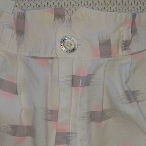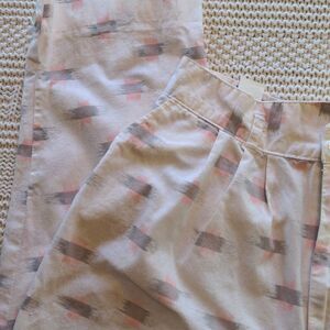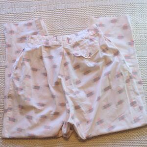 Totally rad Oui by F.B. Jean vintage white pants with pink and gray paintstroke pattern pants