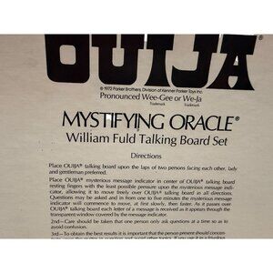 The Ouija Mystifying Oracle William Fuld Talking Board Set by Parker Brothers offers a classic tool for mystical communication. Crafted for ages 8 to adult, this board set invokes intrigue and curiosity, encouraging thoughtful exploration of the unknown.