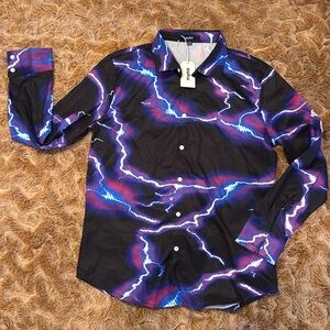 Ouku Black and Purple Lightning Print Men's t shirt buttons down size S
