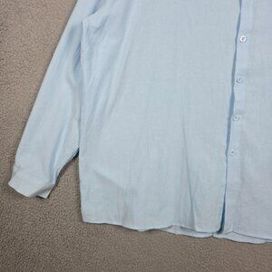 Ouku Shirt Mens Size 3XL Blue Textured Linen Blend Button Down Regular Fit NWT