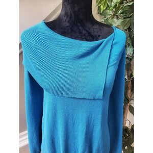 Ounce Women's Solid Blue Viscose Long Sleeve Pullover Knit Sweater Size 2XL.